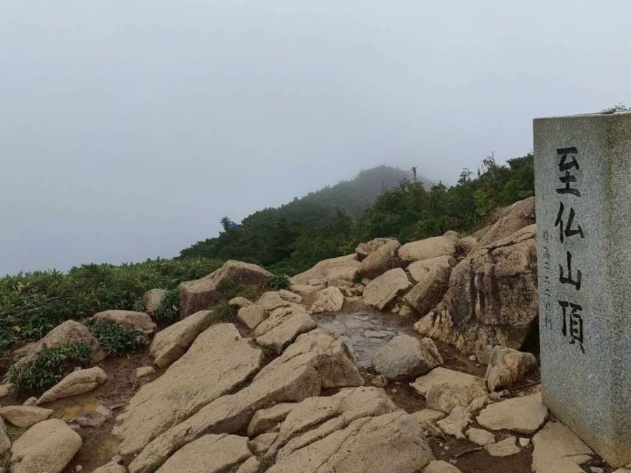 27.28.至仏山頂がガスで展望はないが記念の一枚 | |