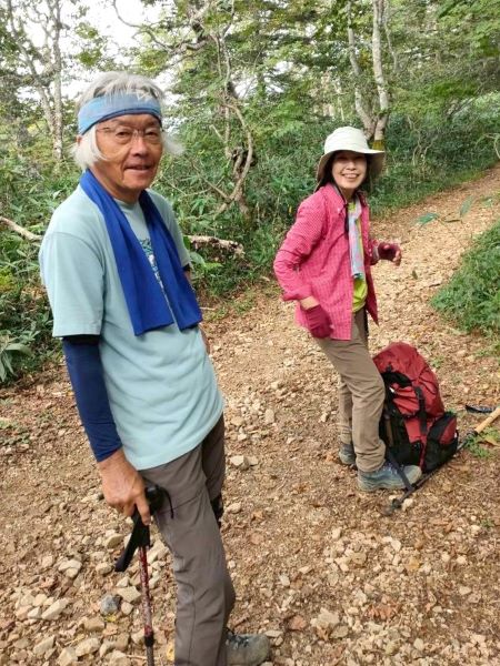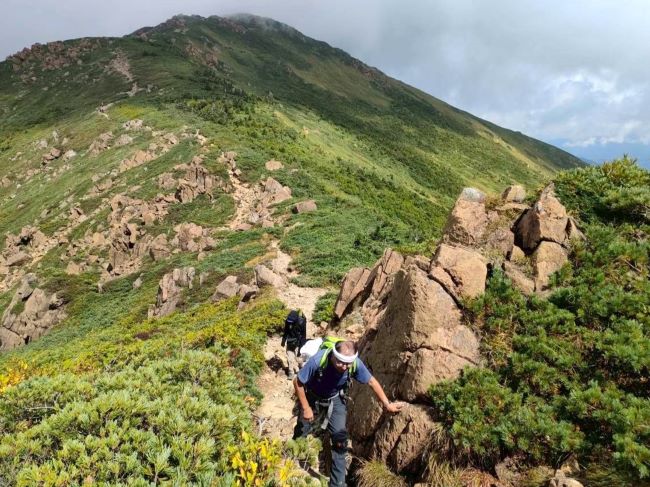 25.朝食(山荘の弁当)休憩 | 26.森林限界を越え周りの景色が良く見える |