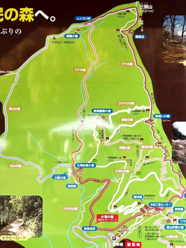 9:50三頭大滝→11:30大沢山→12:05三頭山西峰(ランチ大休止)12:30→