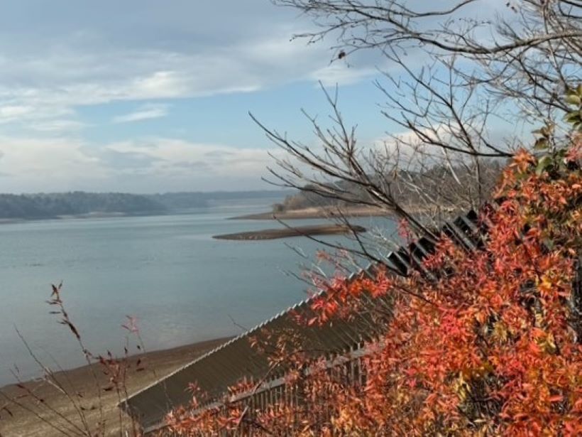 | 09.初冬のススキ原を経て多摩湖に向かう | 10.今の時期は渇水で湖面はかなり下がっていたが 湖畔には紅葉の名残が |