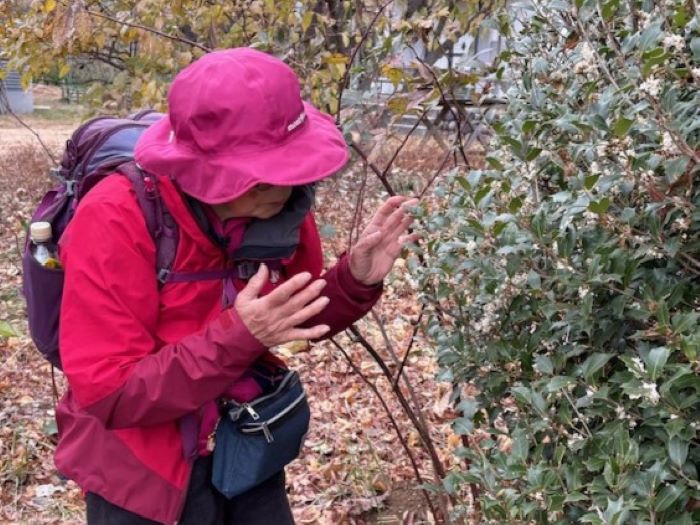 20.「たいけんの里」の庭には柊(ヒイラギ)の 白い花、いい香り! |