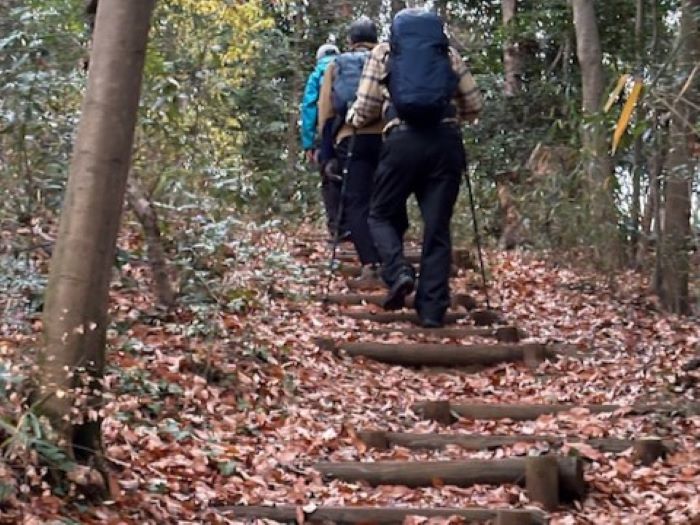 | 21.人数確認点呼をして、腹を空かせに八国山に登る | 22.この整備された登山道は東京都側 |
