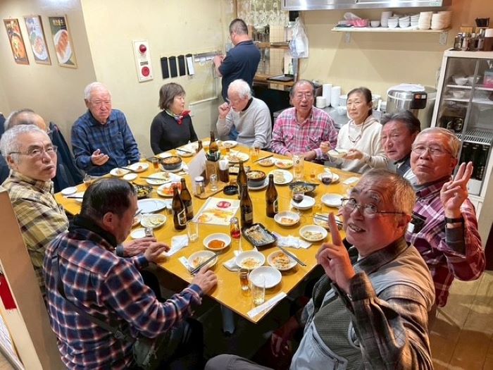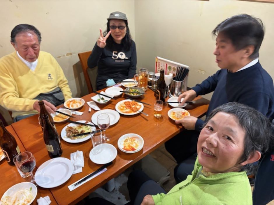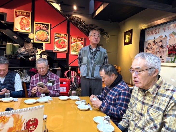 30.山トレーニングは「棒の嶺が最高」・・・ 結構まじめな会話しているテーブル |
