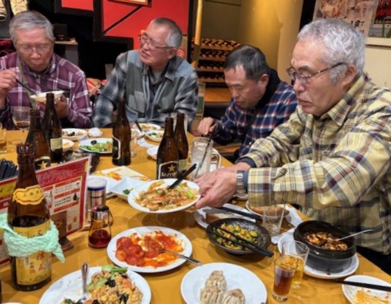 | 13.何故か女性陣がひと塊、少々リッチなランチ! | 14.若手男性陣は何を食したのか? |