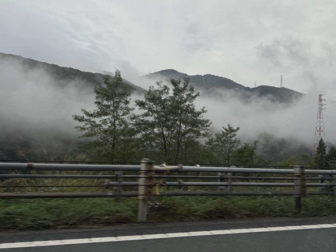 | 01.高速道路走行中に見た踊るような雲の流れ 誰かが「登り雲」かと | 02.夜叉神峠バス停近くの駐車場に車を駐める |