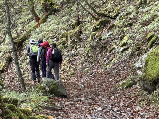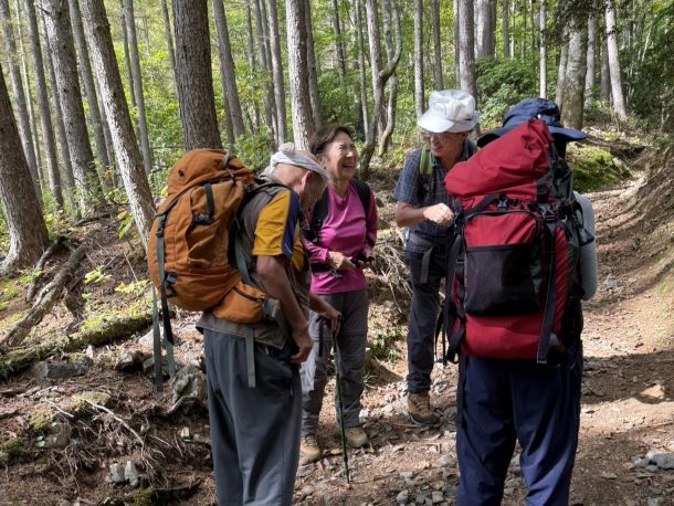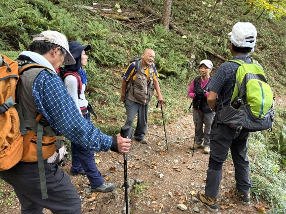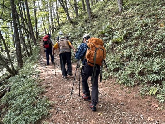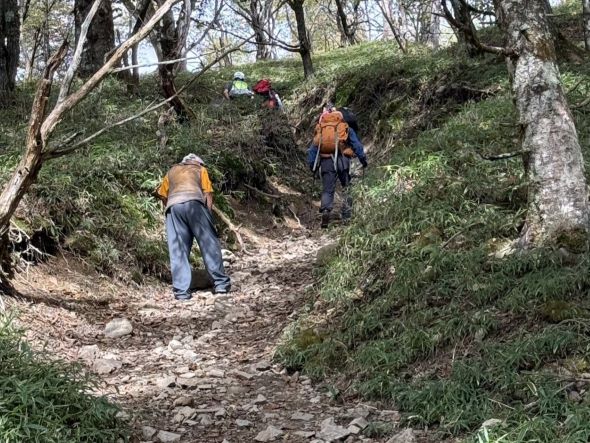 | 11.熊対策で時々笛を吹き、万が一の災難防止へ | 12.先頭3人はまだまだ余裕です |