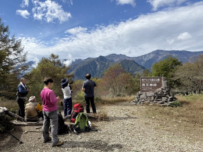 12:05夜叉神峠小屋広場・昼食12:30→13:00五本松13:05→14:00夜叉神峠駐車場14:10⇒