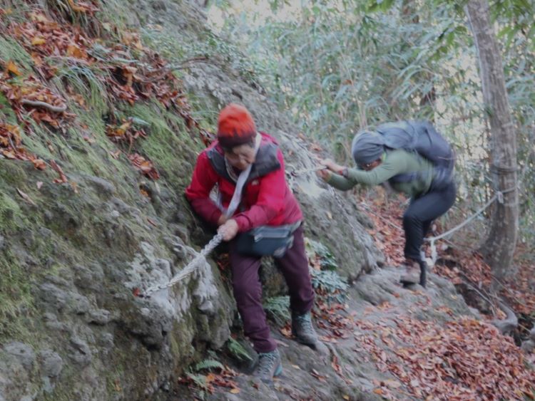 | 17.文殊堂の前で | 18.鎖場での格闘。修行の道です!! |
