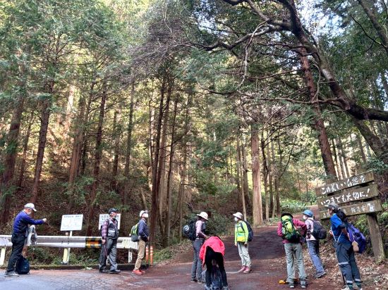 | 01.吾野駅を出てすぐに記念の1枚 | 02.ここから杉木立の中を歩く 「関東ふれあいの道起点」の表示あり |