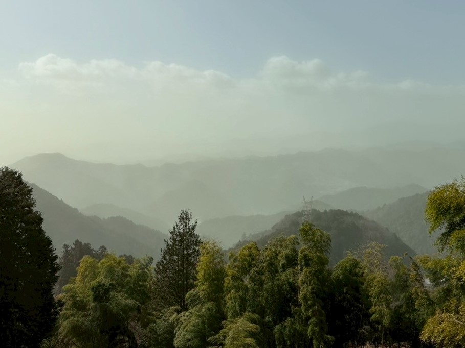 | 13.14.峠のさらに上の展望台に行ったが景色は残念ながら・・・・ それにしてもすごい量の花粉の飛散、花粉症の人は更に悲惨。テイッシュが大活躍!! |