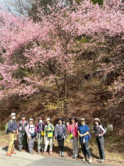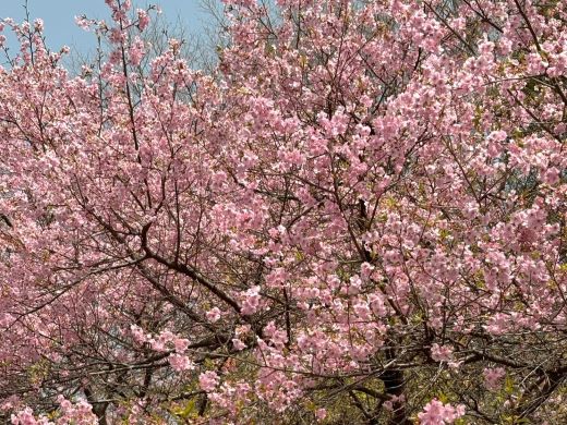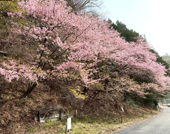 | 09.10.茶店の主人の話では、こんなにすごい花粉の飛散は見たことがないとのことでしたが お目当ての河津桜は満開!! |