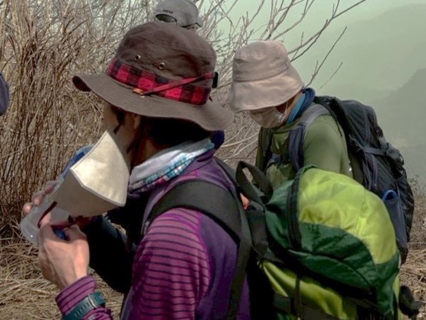 | 07.08.顔振峠(かあぶりとうげ)。義経主従が奥州に逃れる際、景色が素晴らしく何度も振り返ったという 伝説から名付けられたというが、この日は山並みが霞んで見えるほどに花粉が大量に飛散 |