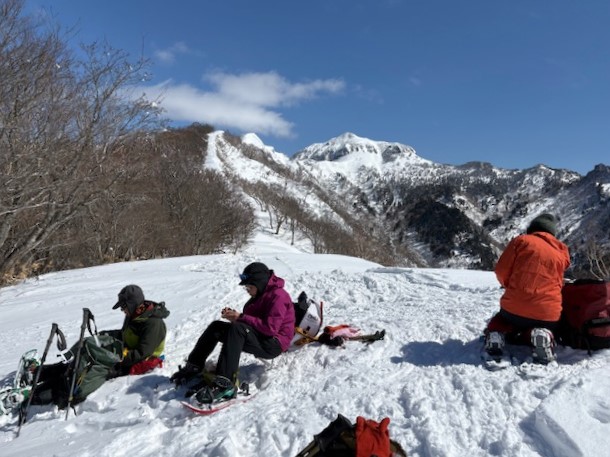 | 09.昼食タイムは雪山でも唯一の楽しみ | 10.谷川岳方面の山々も真っ白で爽快 |