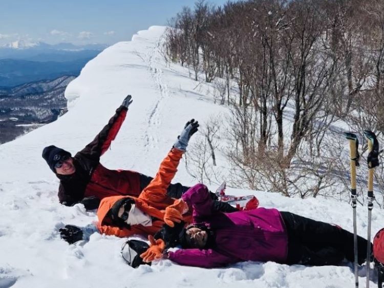 12.大きな雪庇を背景に寝転がりポーズ! |