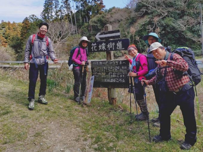 | 03.道端の水仙、もう春です | 04.花嫁街道の入口を示す看板 |