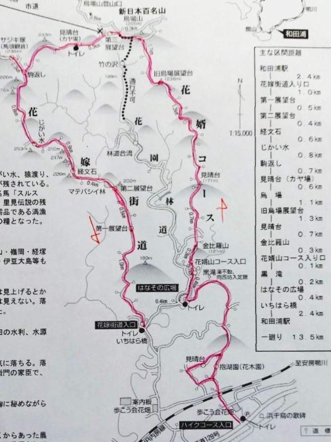| 17.今回は赤色のコース(花婿コース→烏場山→花嫁街道)を歩いて来ました | |