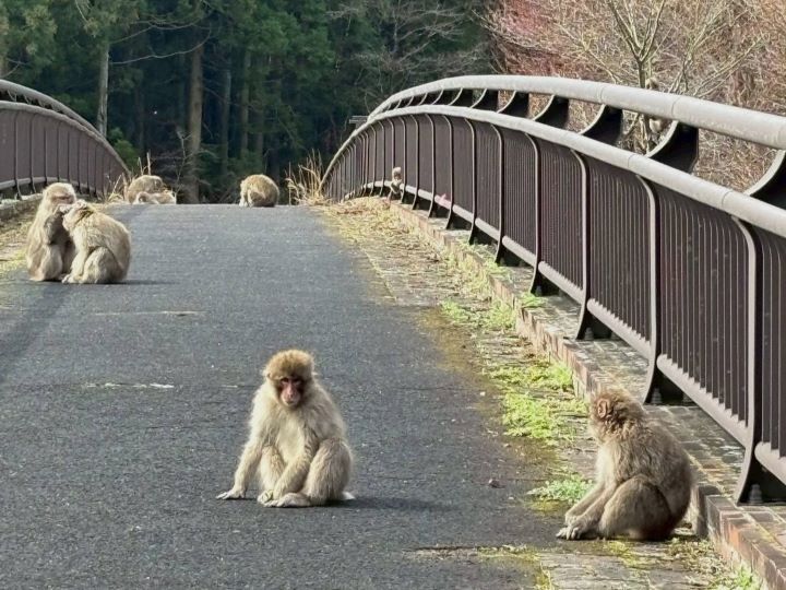 | 10.碓井湖散策、1周約20分 | 11.猿たちが橋を通せんぼ‼ |