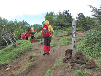 13日:キャンプ場6:30発〜志津乗越駐車場7:25〜男体山頂上着10:10