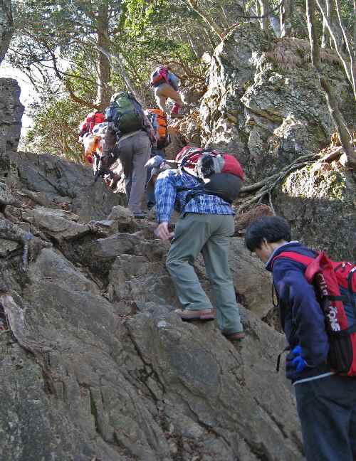 平成22年12月19日(日) 参加者10名 所沢発6:53〜(JR青梅線)〜JR御嶽駅〜(徒歩・ケーブル)〜御岳山駅〜 (奥の院・鍋割山経由)〜大岳山荘〜大岳山〜大岳山荘〜 (復路は山腹コース経由)〜御岳山駅〜(ケーブル・バス)〜JR御嶽駅
