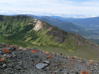 振り返ると黒斑山の山並み、二重三重の外輪山が壮観である