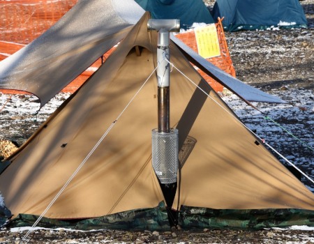 | 薪ストーブ付きのソロテントにちょっぴりお邪魔 |