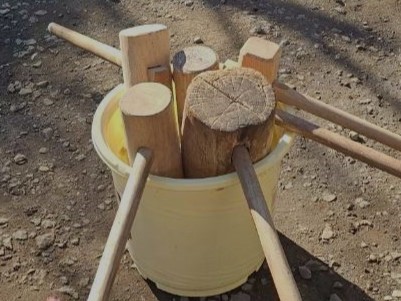 | 01.杵は大(約7.5Kg)、中(約3Kg)、小を用意 | 02.Nさん自家栽培の「おたふく大根」を すりおろし、からみ餅の準備 |