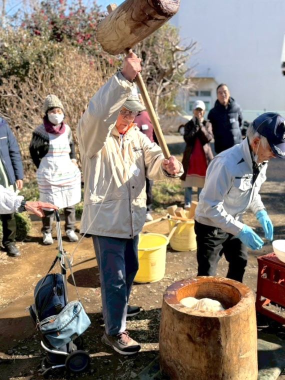 | 15.16.餅つきも2巡目になると構えも動作も決まり、大上段から「ひと振り入魂」 | |
