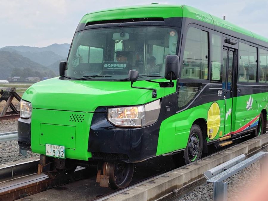 | 16.17.世界初のDMV(Dual Mode Vehicle)に乗車、気分は快適。ナンバープレートが付いている | |