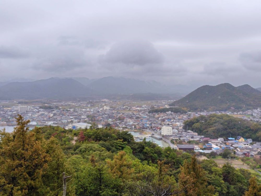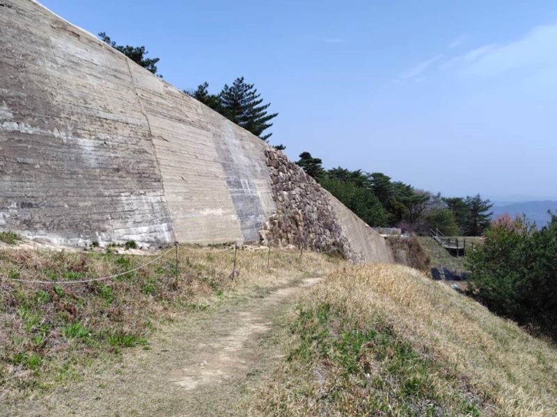 | 18.19.雨の中の登城、本丸の石垣がしっかりと残っていた、眼下は東かがわ市の街並み | |