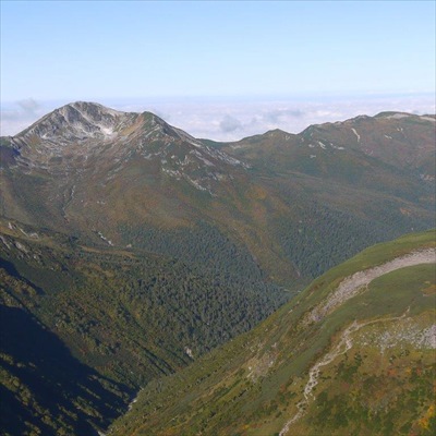 | 01.前夜の雨は上がって快晴の予感(写真は小池新道からの抜戸岳) | 02.長い行程のため荷は重く、登りはきつかった(弓折乗越手前) |