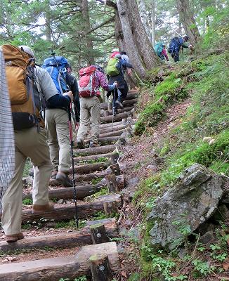 | 15.ノッキリで休憩。 | 16.小雨の中、頂上を目指す。 |