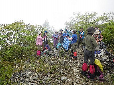 | 11.12. イカイワの肩で休憩、休んでいても梅雨入り宣言された空模様が気になる | |