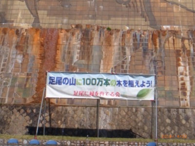 | 09.植樹場所へいざ出陣 600段の階段を登ります | 10.植樹場所へ移動中に見た銅精錬の煙突 明治時代の名残です |