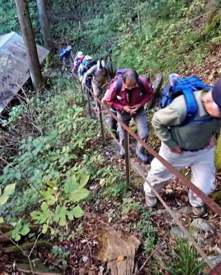 | 09.これから本格的な登り | 10.丸太の階段に苦しめられたあとの緩やかな道 |