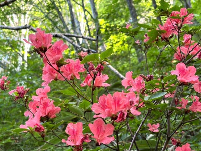 | 19.山ノ家からは樹林帯の下山路となります | 20.以下は登山路の傍らの花木、草花たち 先ずはミツバツツジ |