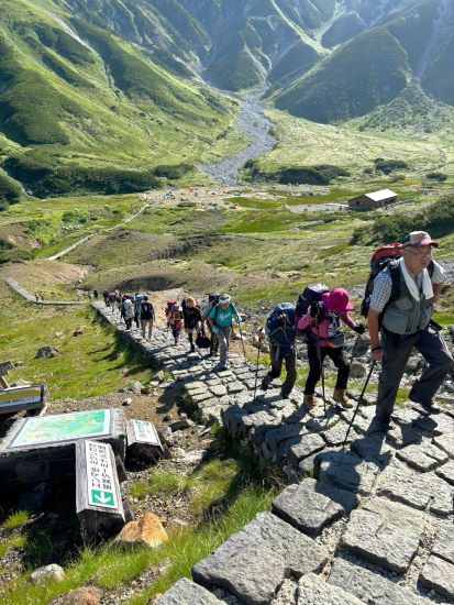 | 07.遙か遠くに雄山が微かに見えます。 | 08.雄山へ向けて登山開始。元気です! |
