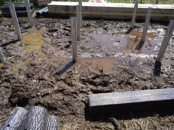21.途中休憩、太陽もだいぶ昇ってきた | 22.木の階段は朽ち荒れ、水溜まりもある |