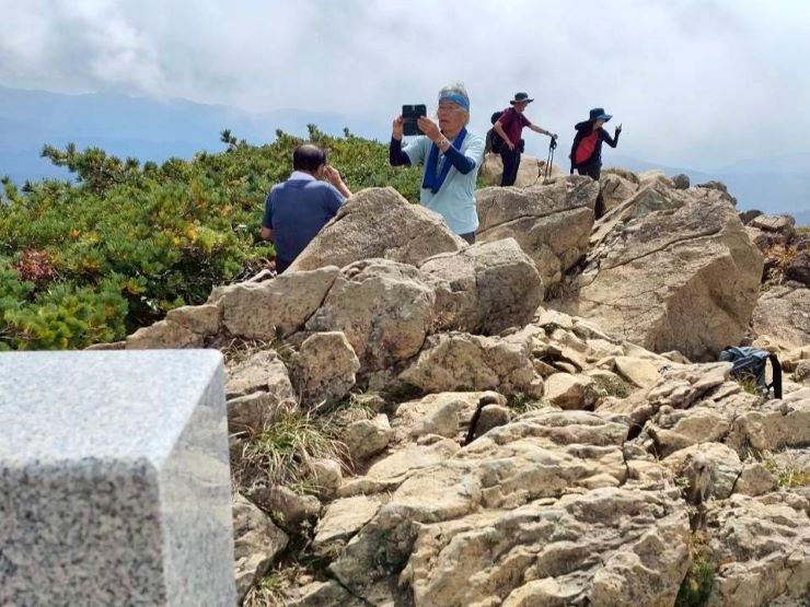 27.28.至仏山頂がガスで展望はないが記念の一枚 | |