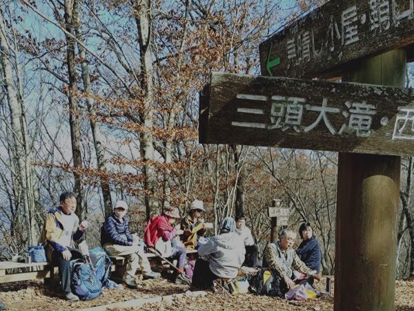 9:50三頭大滝→11:30大沢山→12:05三頭山西峰(ランチ大休止)12:30→