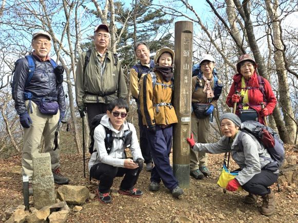 | 13.三頭山中央峰にて | 14.三頭山東峰にて。これで西峰、中央峰、東峰と 三つの頭(頂)を踏破 |