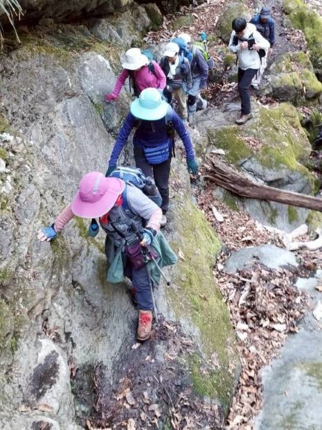 | 13.冷たい湧き水、飲めるかな? | 14.急登で笑顔が消える⁉ |