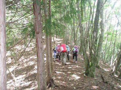 | 01.奥多摩駅からバスを使用、深山橋で降車。後方の橋を渡り右へ 登山道に入る | 02.勾配ある登りが続く 2度目の休憩 風があり気温の割には快適に歩けた |