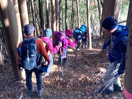 | 23.中沢下山口への分岐からは近道ではあるが急な下り坂 | 24.下りの2時間余りは足も疲れてきて緊張の連続 |