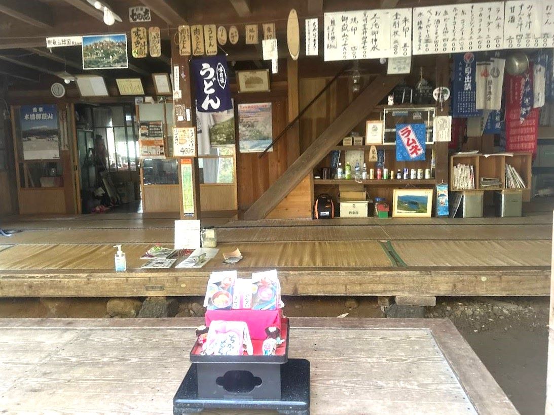 05.行場山荘ではお菓子や飲み物が売られていた | 06.八合目の女人堂の前で ここから視界が開けてくる |