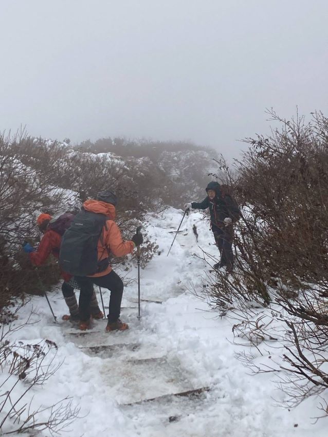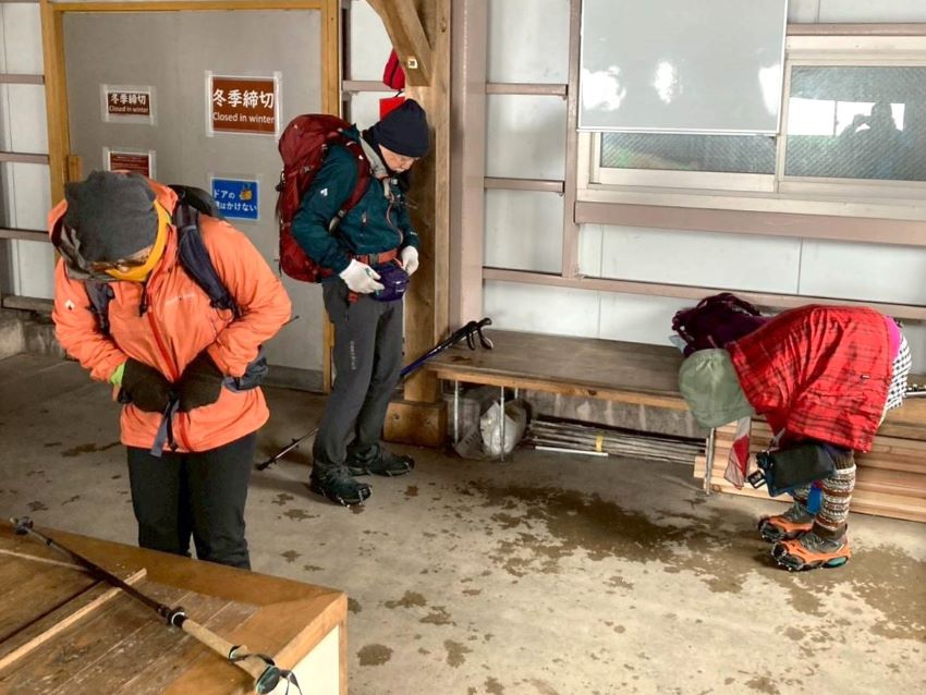 10:25六合目避難小屋(軽アイゼン装着)→12:00弥山(大山山頂・避難小屋で昼食)12:35