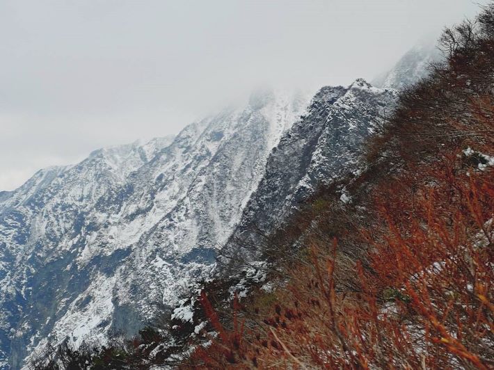 | 13.雪道の下山はさらに慎重に | 14.下山時に目にした大山の雪の岩壁 |