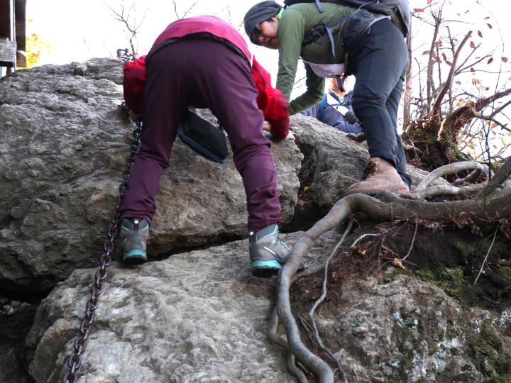 | 17.文殊堂の前で | 18.鎖場での格闘。修行の道です!! |