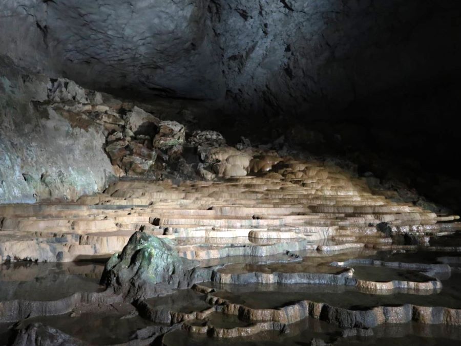| 27.秋芳洞入口(正しい読み方:あきよしどう) | 28.秋芳洞の見どころのひとつ「百枚皿」 |