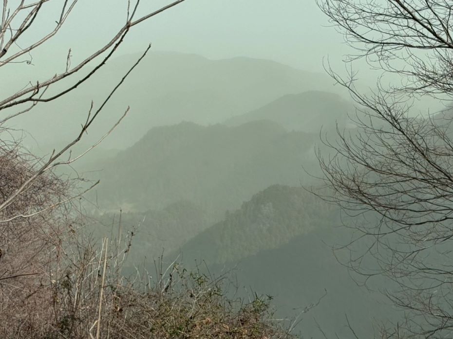 | 13.14.峠のさらに上の展望台に行ったが景色は残念ながら・・・・ それにしてもすごい量の花粉の飛散、花粉症の人は更に悲惨。テイッシュが大活躍!! |