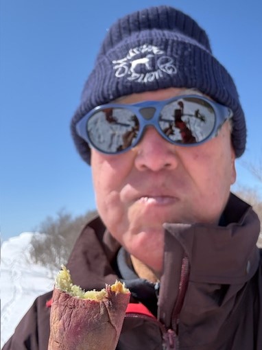 12.大きな雪庇を背景に寝転がりポーズ! |